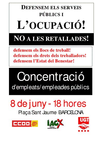 Dia 8 de juny a les 18 hores CONCENTRACIÓ A PLAÇA SANT JAUME