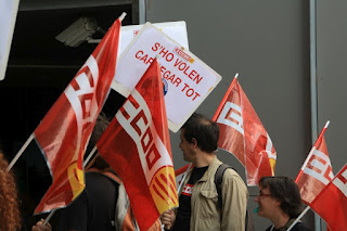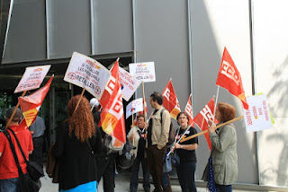Ahir al matí delegats i delegades del Lleure Educatiu de CCOO es van concentrar a la porta de la Fundació Catalana de l’Esplai, entitat que pertany a la patronal AEISC, una de les patronals que formen part de la mesa negociadora del conveni del Lleure i que estan bloquejant la negociació del mateix.