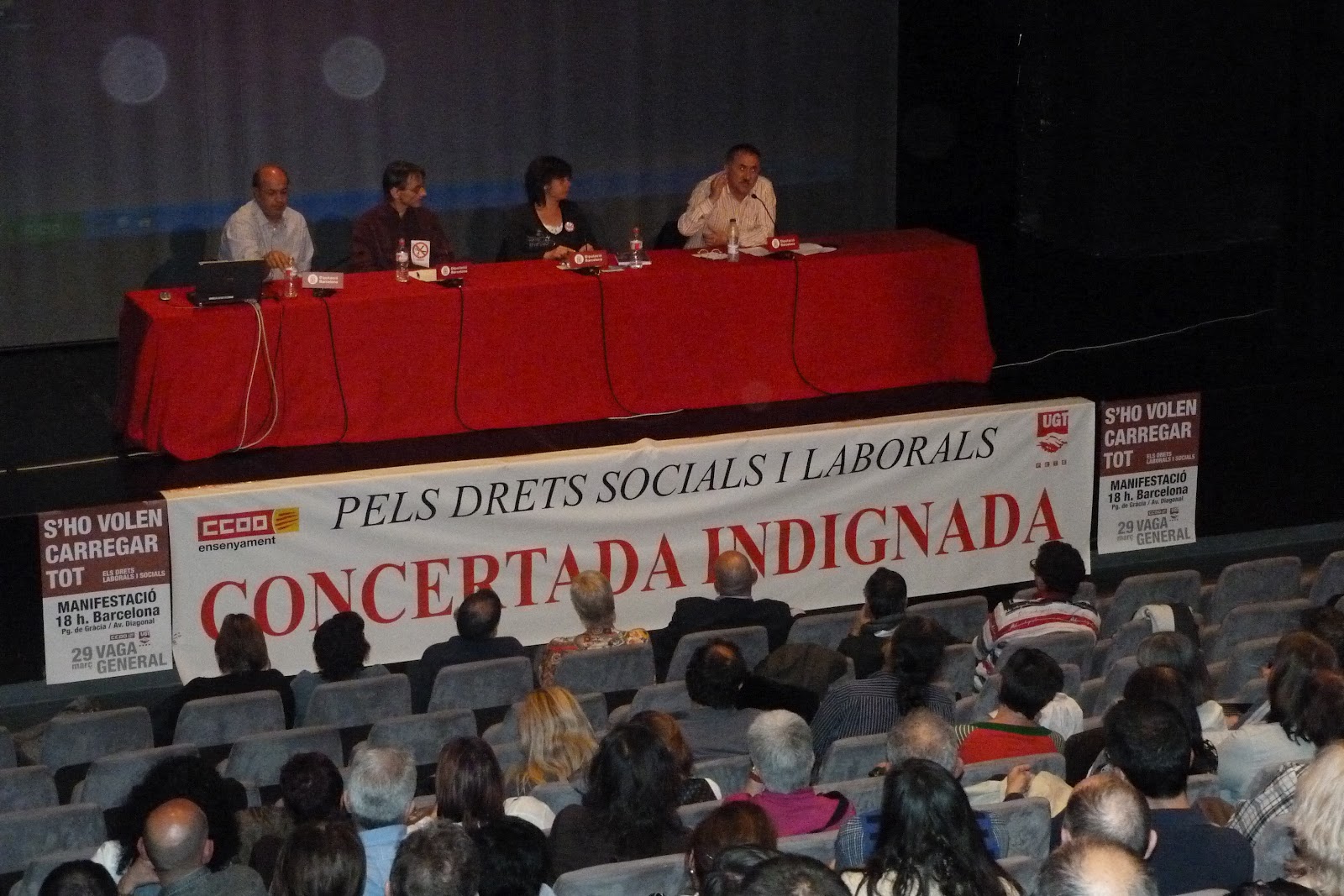 Dimarts 27 de març s’ha celebrat una assemblea de treballadors i treballadores de l’escola concertada, organitzada per UGT i CCOO conjuntament i oberta a tot el personal que vulgui participar en un diàleg constructiu i renovador de les mobilitzacions del sector.