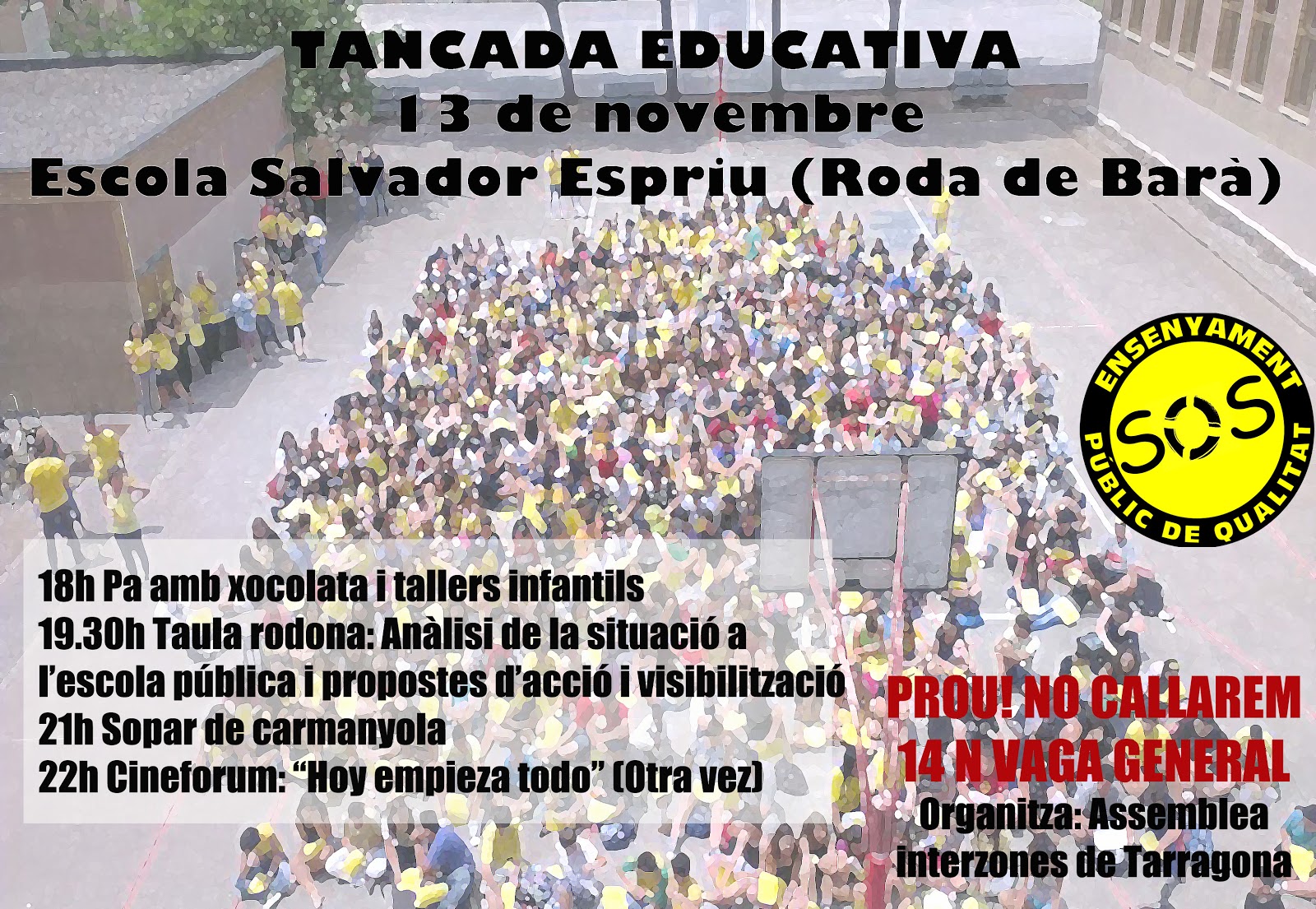 13N: a les 12,30. Farem una cadena humana amb pares/mares, alummnat i professorat dels centres educatius.