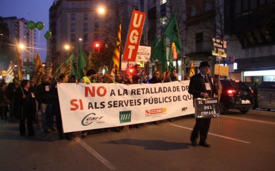 Barcelona ha acollit una gran manifestació convocada per diferents sindicats de l’Àrea Pública en protesta per les retallades impulsades pel Govern de la Generalitat. Unes 30.000 persones han participat en una marxa que ha tingut el seu inici a la Plaça de Sant Jaume i ha acabat a les portes del Parlament de Catalunya, on se celebrava el debat sobre els pressupostos de la Generalitat.