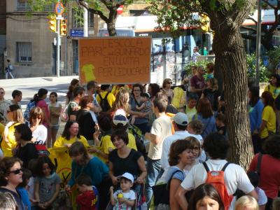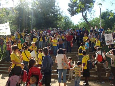 Al voltant de 500 mares, pares, alumnes i professors/es van participar en aquest acte, convocat per l’Assemblea de Zona i algunes Ampes.