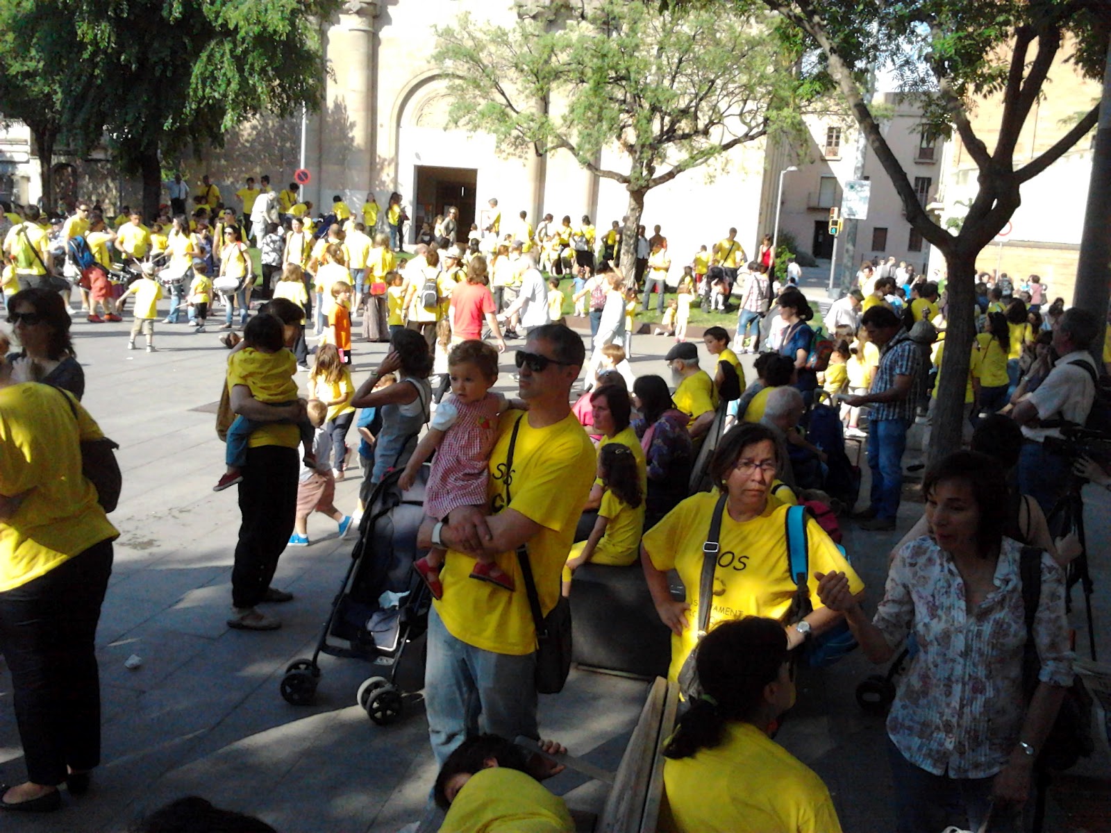La manifestació ha transcorregut en un ambient festiu i reivindicatiu, amb molts nens i nenes que acabaven de sortir de classe i en la qual molts dels assistents han portat samarretes grogues amb el lema “SOS ensenyament públic de qualitat”.