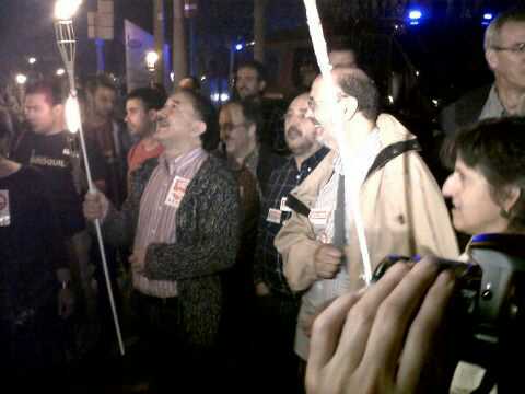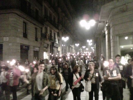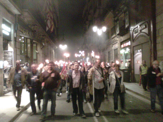 A Barcelona, s’ha fet una vetlla amb torxes. Centenars de persones han participat en aquesta protesta convocats per Comissions Obreres i la UGT. Han començat el recorregut a la plaça de Sant Jaume, on s’ha llegit un manifest, i després han anat en comitiva fins a la delegació del govern de l’Estat a Catalunya.