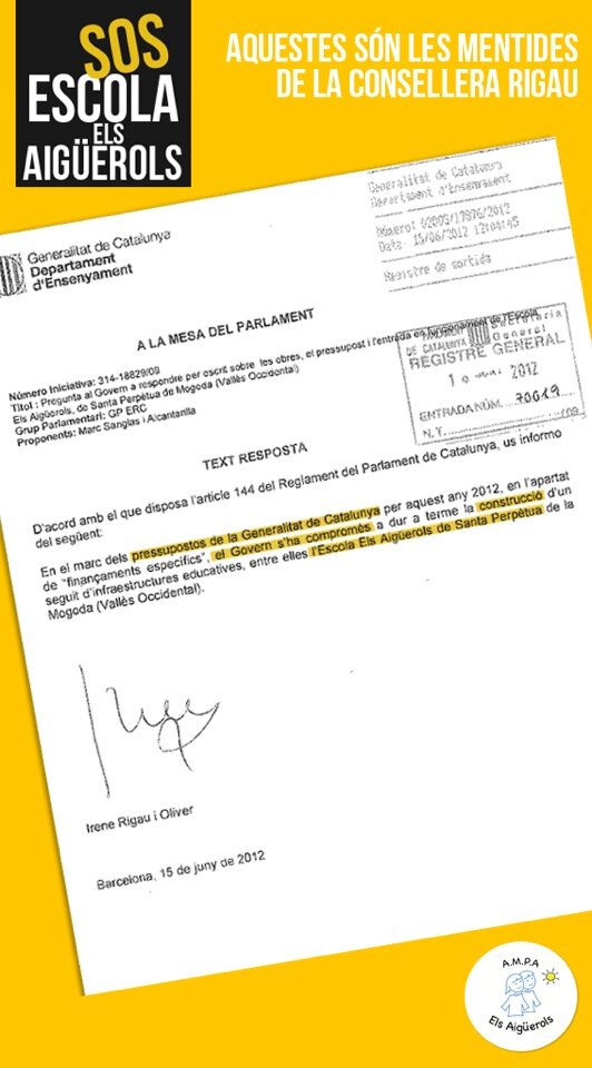La consellera d’Ensenyament de la Generalitat, Irene Rigau, ha anunciat a la premsa que el seu Departament té intenció de tancar progressivament 7 escoles, 61 línies de P3 a les escoles públiques i 12 línies de P3 de les escoles concertades de Catalunya el proper curs sense consultar ni informar les famílies ni el personal educatiu afectat.