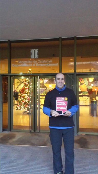 Avui dimarts 16 de desembre és el 38è dia de la presència indefinida a les portes del Departament que vam acordar en assemblea els i les delegades de CCOO Educació el passat 23 d’octubre.