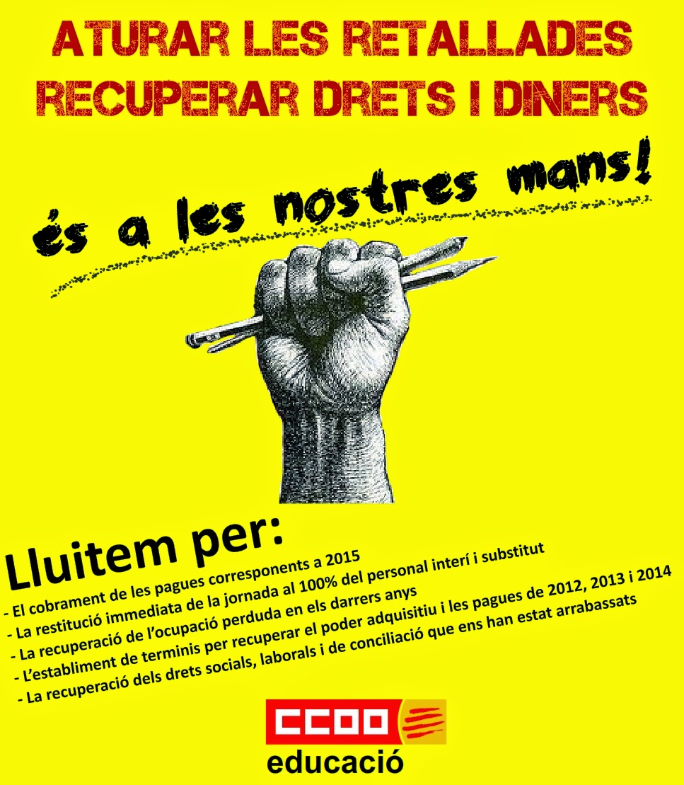 En aquests moments, quan tant a Madrid com a Catalunya s’estan preparant els pressupostos pel 2015, creiem necessari pressionar per exigir un canvi de rumb, perquè el governs de CiU i PP prioritzin l’inversió educativa, l’aturada de les retallades i la recuperació dels drets salarials i laborals robats els últims anys: