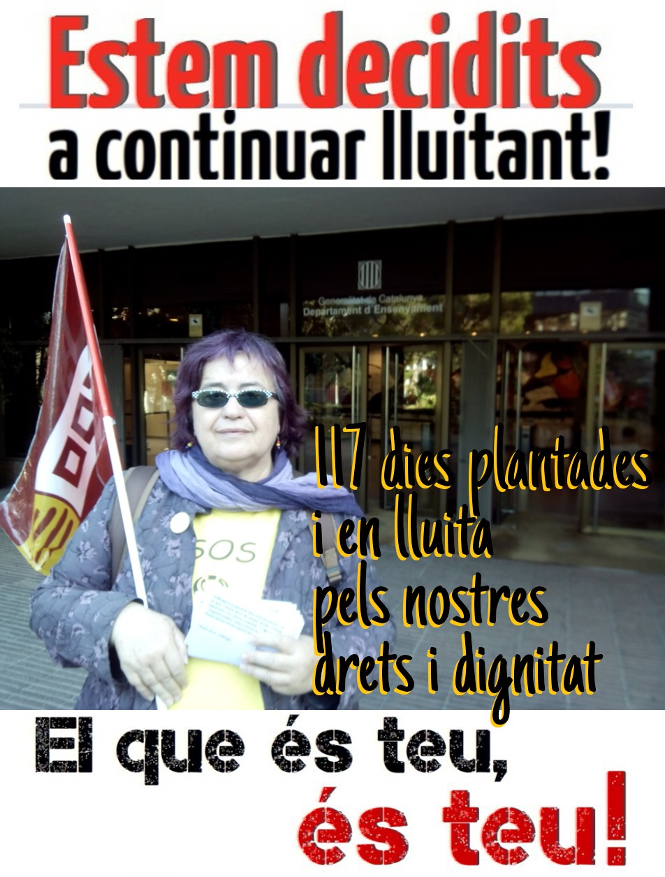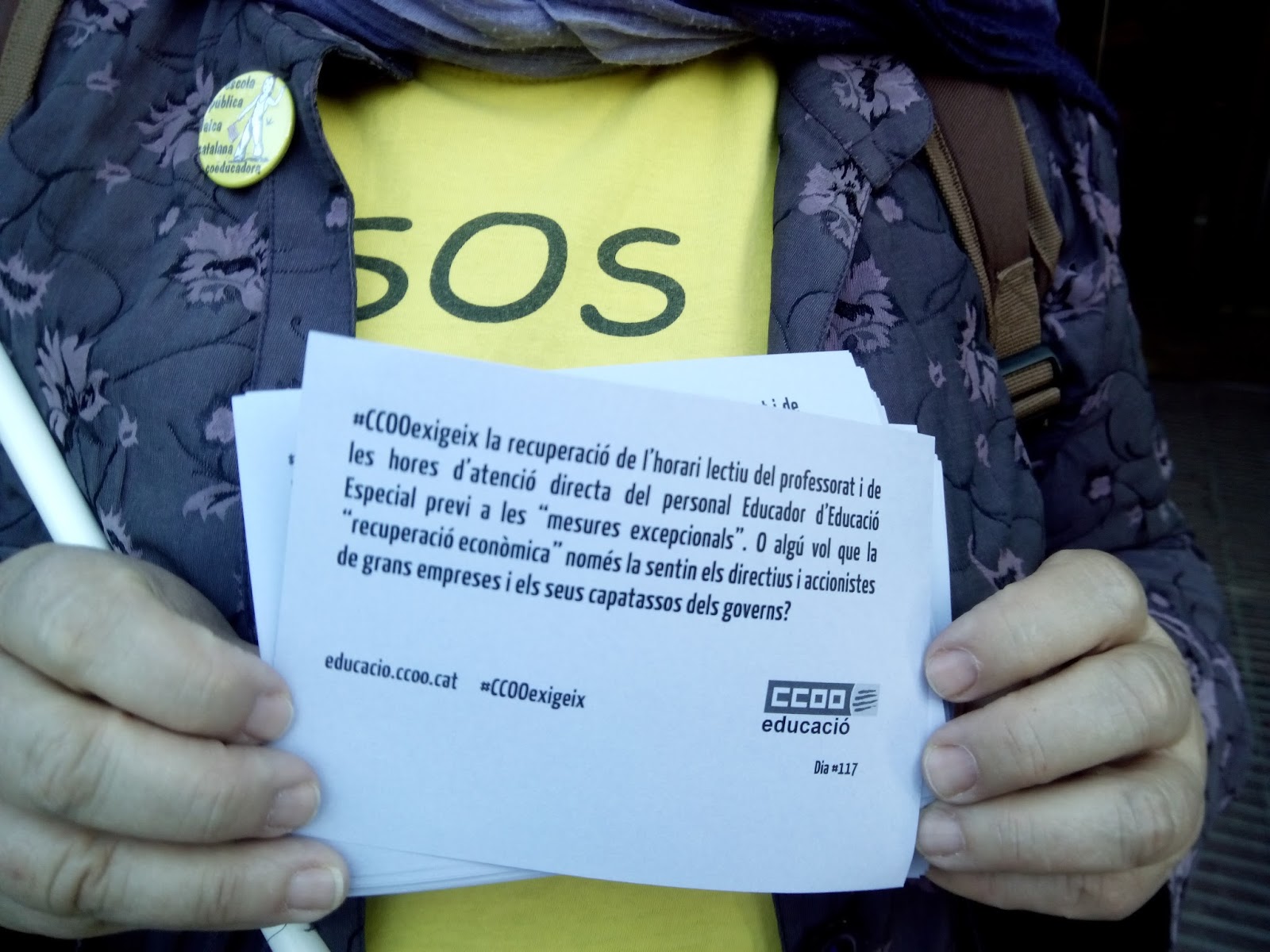 Avui dimarts 12 de maig portem 117 dies de permanència a les portes del Departament, tal i com vam acordar en assemblea els delegats i delegades de CCOO Educació el passat 13 d’octubre.