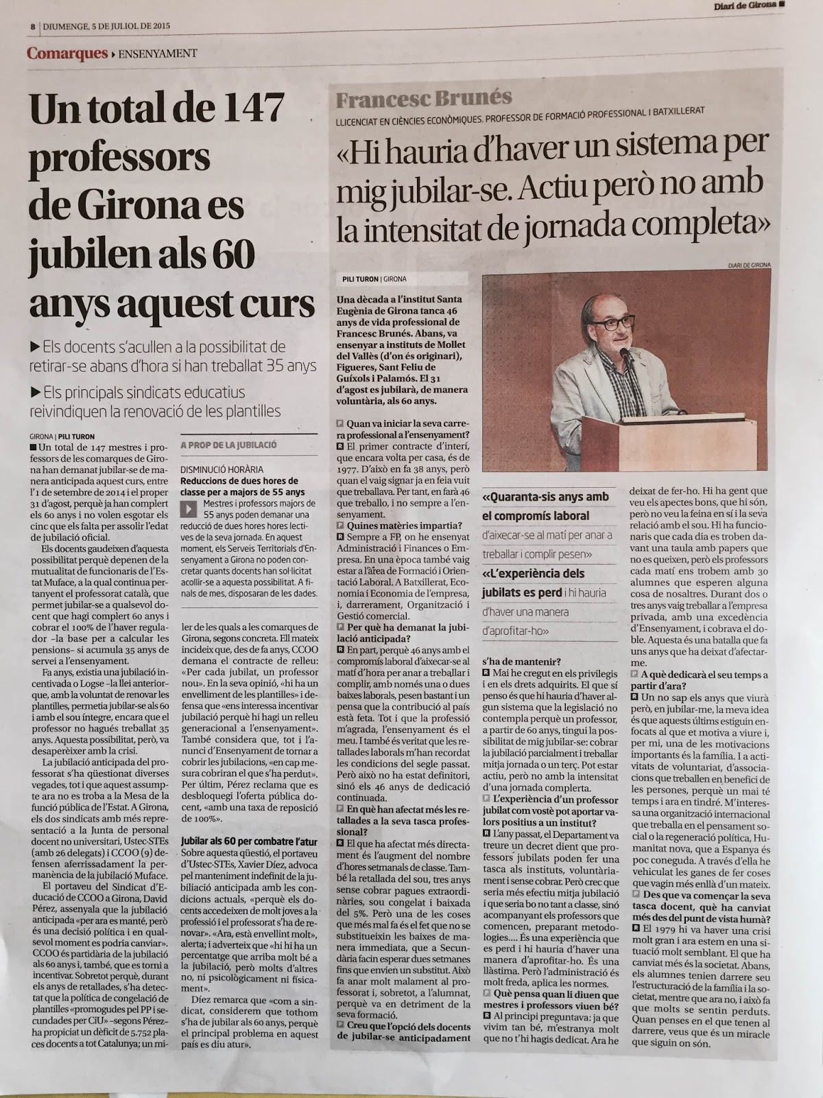 NOTÍCIA AL DIARI DE GIRONA DEL DIUMENGE 5 DE JUNY DE 2015