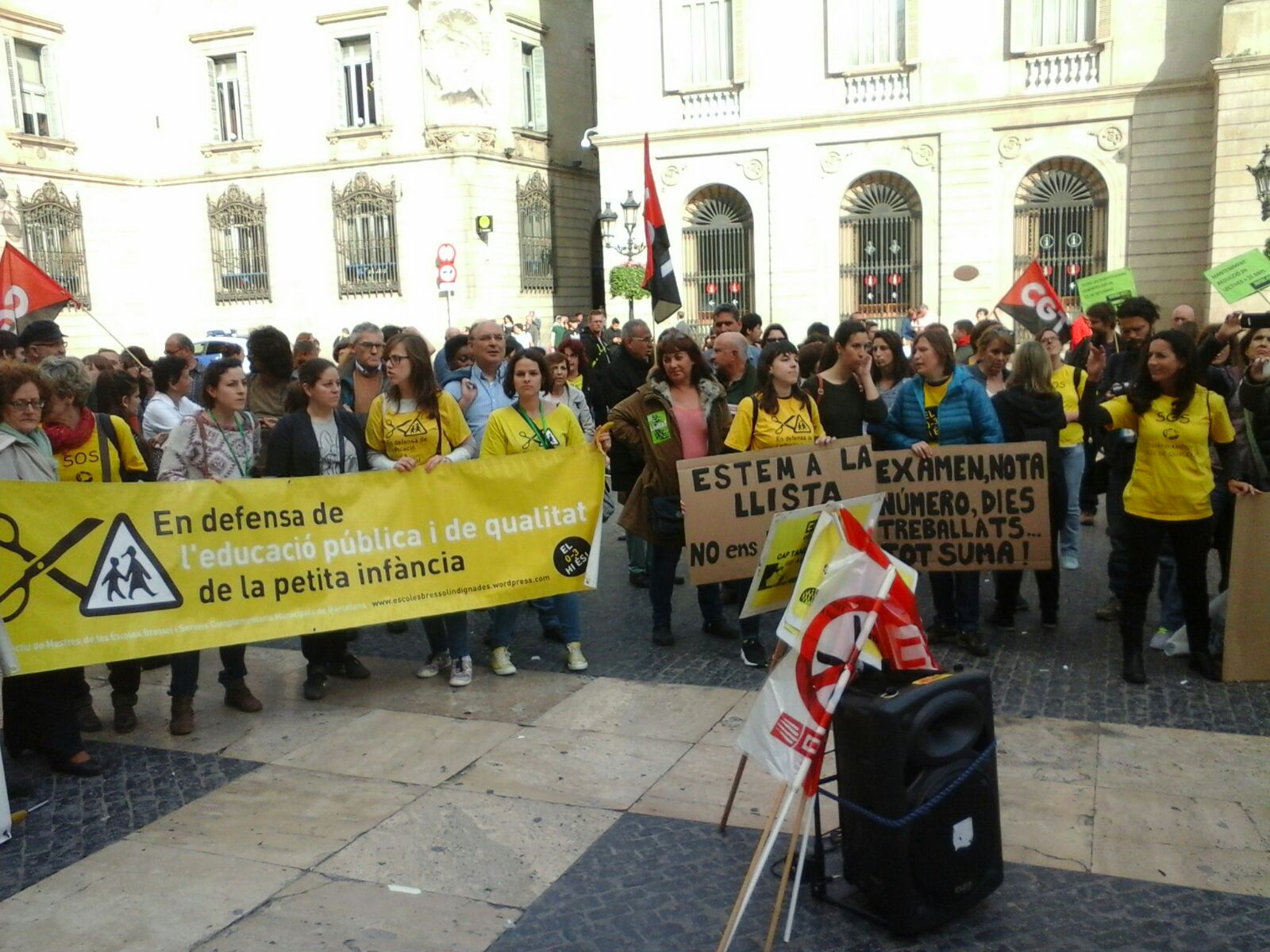 Ahir, 11 de maig, els sindicats vam convocar una concentració a la plaça Sant Jaume per L’ENSENYAMENT PÚBLIC DE QUALITAT: PROU RETALLADES.