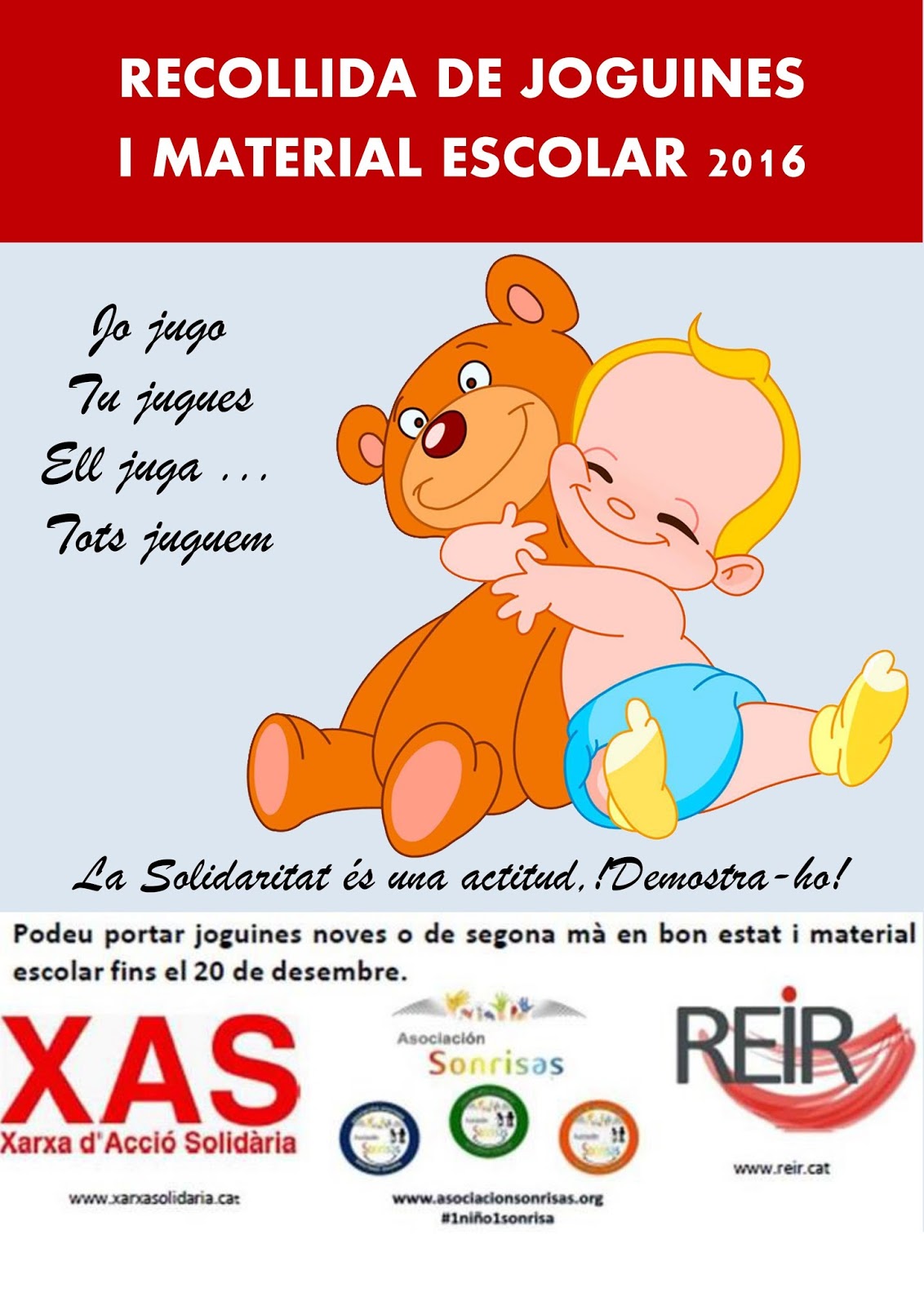 Un any més, l’Associació Sonrisas juntament amb la Xarxa d’Acció Solidària tornem a engegar aquest Nadal la campanya de recollida de joguines i de material escolar.