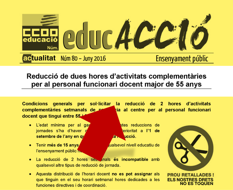 generals per sol·licitar la reducció de 2 hores d’activitats complementàries setmanals