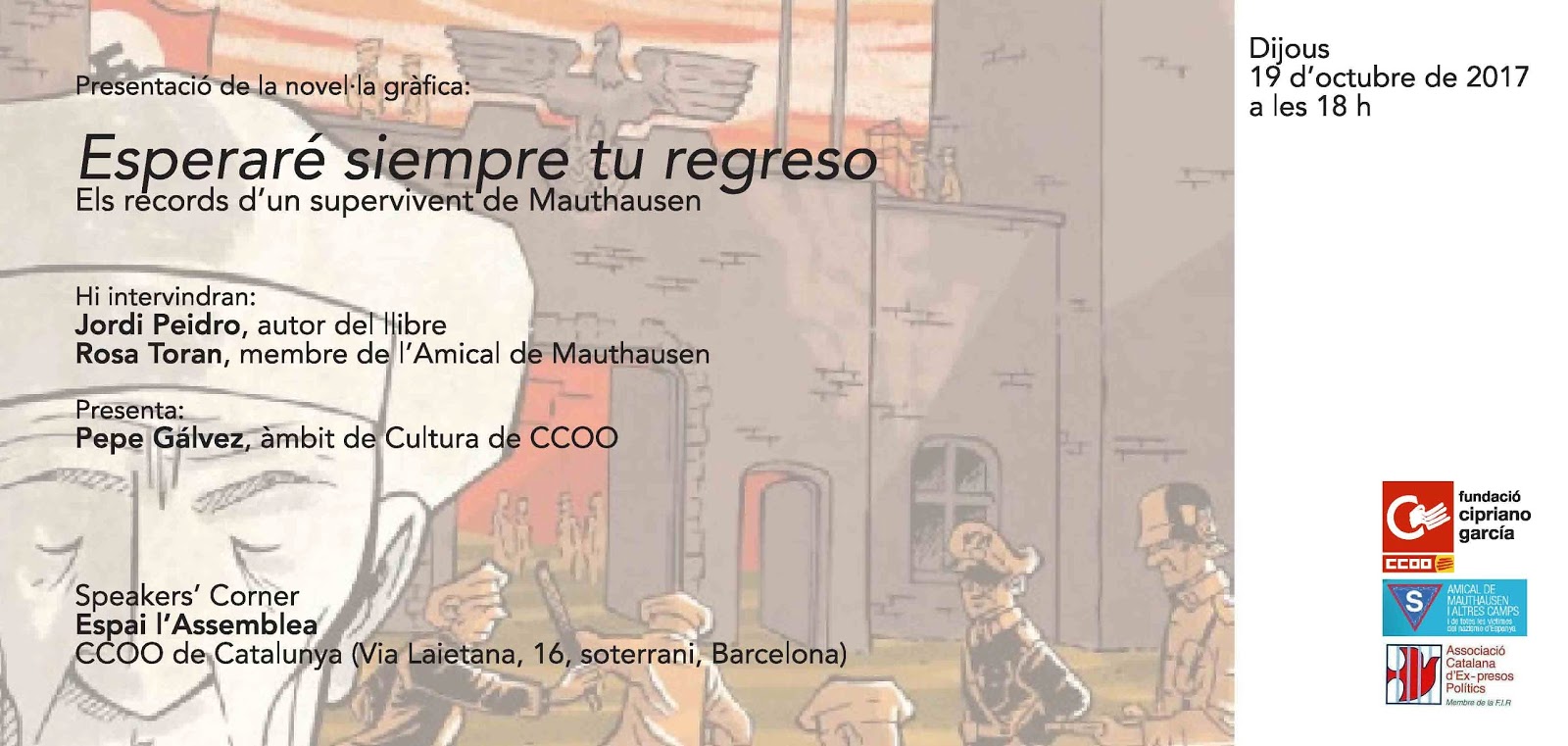 A l’acte de presentación, organitzat per la Fundació Cipriano Garcia – CCOO de Catalunya, Amical de Mauthausen i l’Associació d’Expresos polítics, hi intervindran : Jordi Peidro, autor del llibre i Rosa Toran, membre de l’Amical de Mauthausen. Presentarà l’acte Pepe Gálvez, de l’àmbit de Cultura de CCOO.