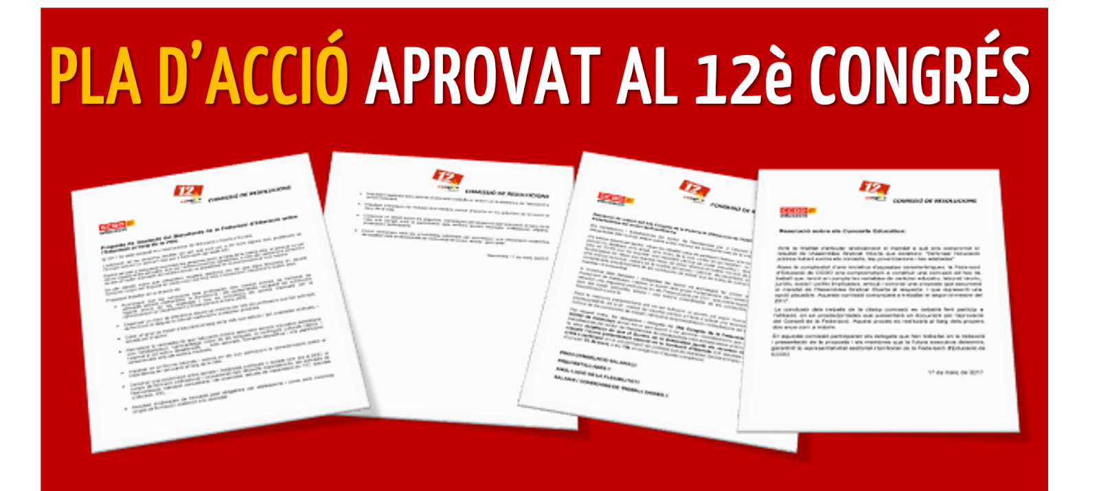 Aquí podeu consultar el Pla d’acció aprovat al 12è Congrés de la Federació d’Educació de CCOO: Pla d’acció aprovat Comparteix. Twitter Facebook Pinterest LinkedIn Tumblr Email