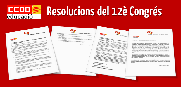 Aquí podeu consultar les resolucions aprovades al 12è Congrés de la Federació d’Educació de CCOO: Resolució sobre els Concerts Educatius Resolució de suport als treballadors i treballadores del sector de Residències Resolució sobre educació al llarg de la vida Comparteix. Twitter Facebook Pinterest LinkedIn Tumblr Email