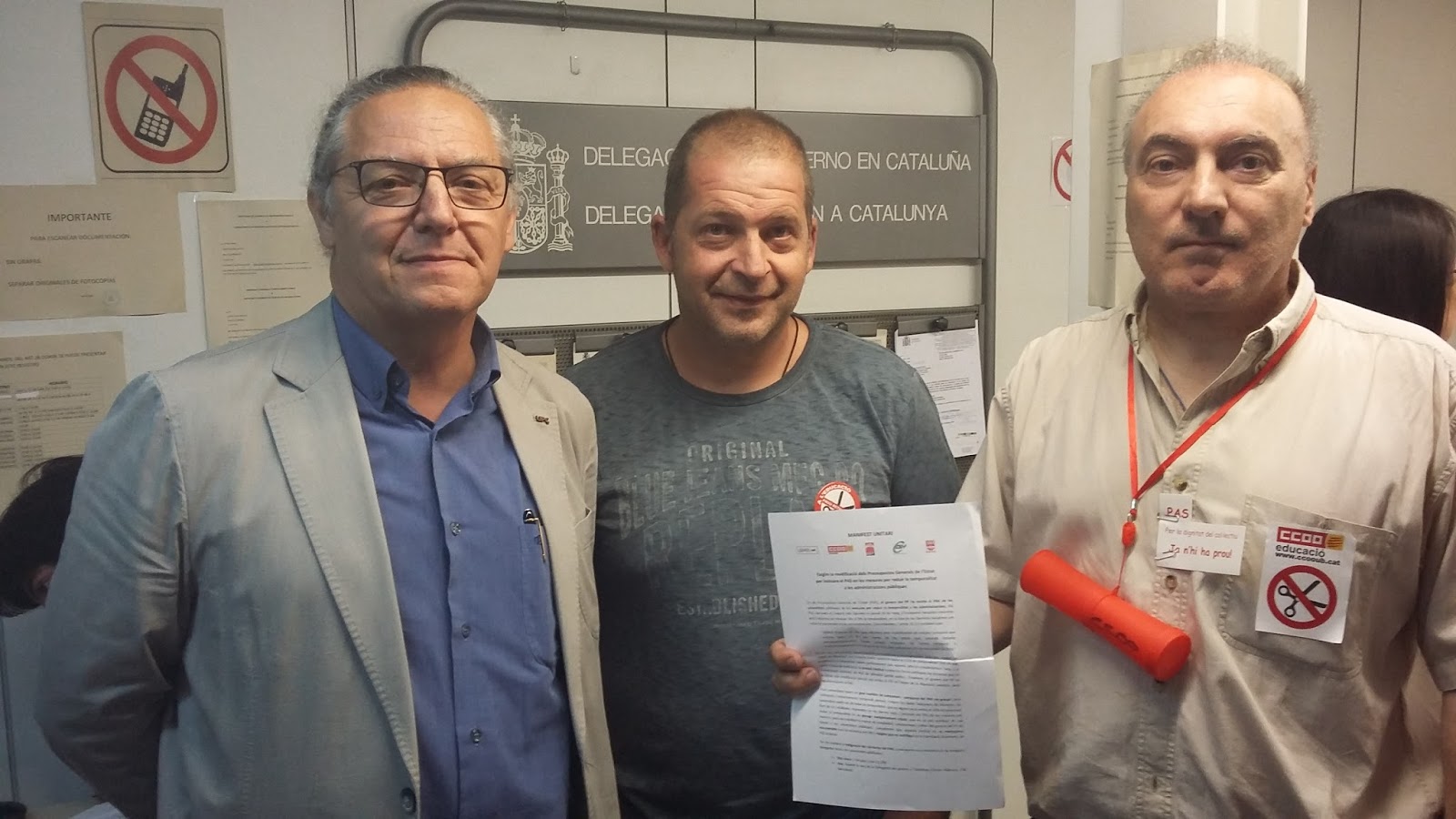 a Catalunya, per fer entrega del manifest unitari en el que reclamàvem que s’inclogui el PAS a les mesures