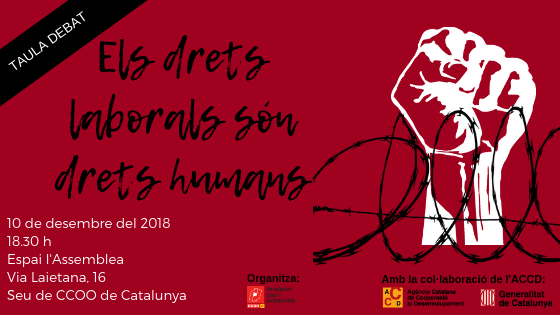 Per fer-ho organitzarem un acte central el dia 10/12 que girarà al voltant de “els drets laborals també són drets humans. Ser sindicalista una activitat d’alt risc a l‘espai Assemblea de CCOO Catalunya (Via Laietana, 16, Barcelona).